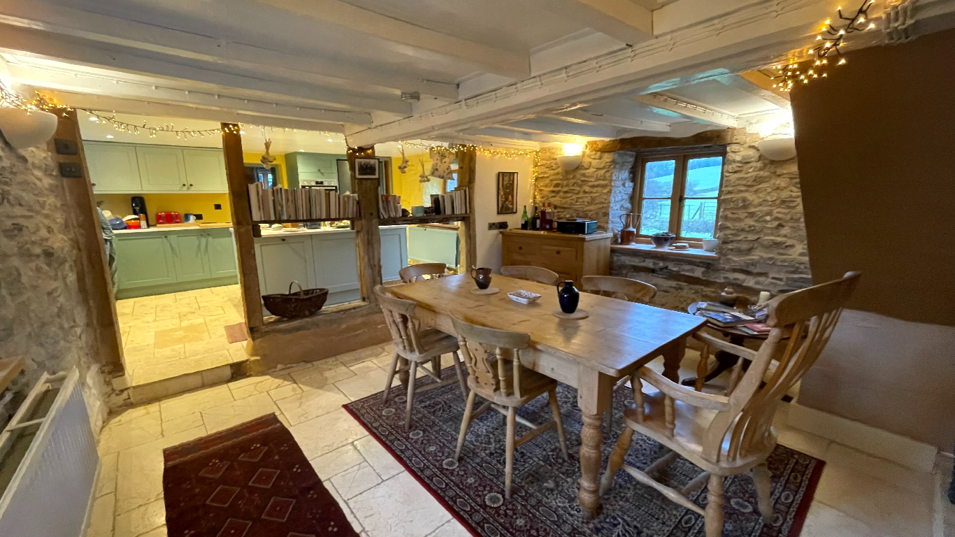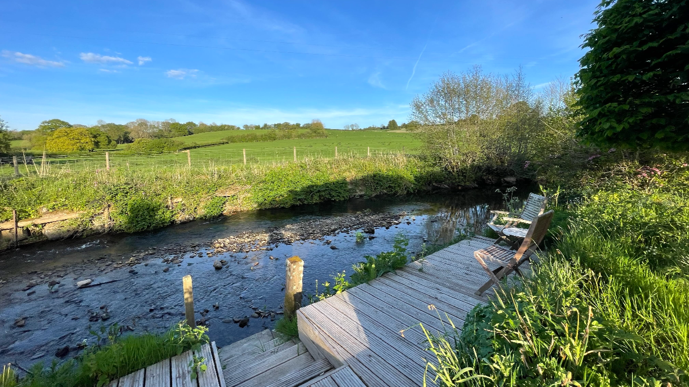 Pentiley is a charming old cottage in the quiet and rural village of Huntington within 9 miles of Hay-on-Wye. The cottge has a large pretty cottage garden with seating by the River Arrow which flows through the grounds and where you can enjoy an evening drink on the decking overlooking the river. The cottage sleeps six in three comfortable double bedrooms, one upstairs bathroom and one downstairs en suite shower room. There is a modern new kitchen with dishwasher and washing machine plus a large American-style fridge. There is a spacious sitting room with a wood burner. The dining room comfortably sits six round a large table. The sitting room, kitchen and downstairs bedroom open out to a patio with seating overlooking the glorious Herefordshire countryside. A genuine retreat after a busy day at the Festival.